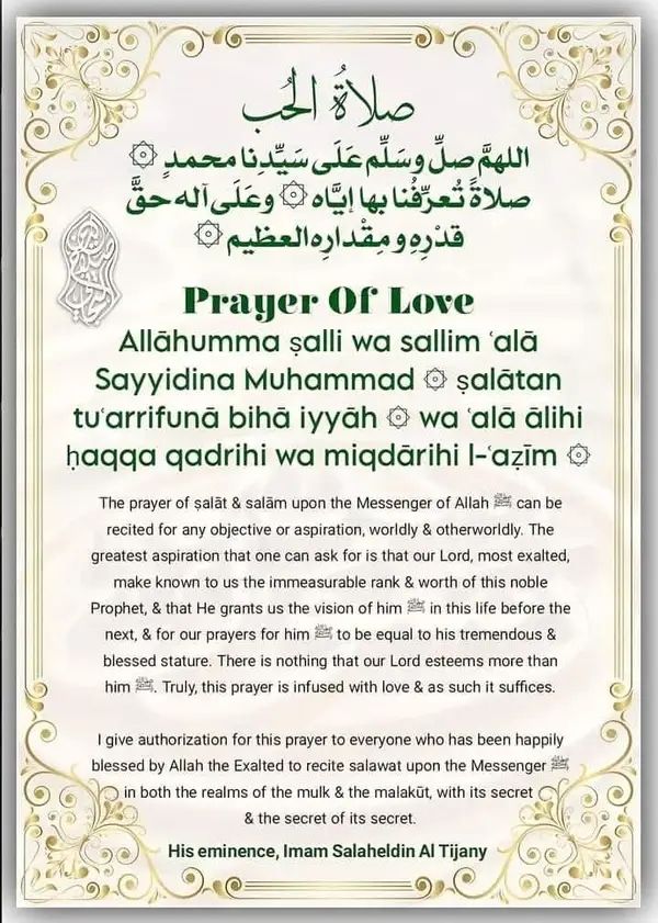 🌹Allahumma salli wa sallim wa bārik ‘alā Sayyidina Muhammadin, Sayyidina Sa‘ād Allah ﷺ, kama annahu ḥabībullah ‘azza wa jalla. Wa salli wa sallim wa bārik Allahumma ‘alā Sayyidina Muhammadin, Sayyidina Sa‘ād al-Khalq ﷺ, wa ‘alā ālihi wa ṣaḥbihi ajma‘īn. Waj‘alnā min ahl as-sa‘ādah, ya Rabbi, arzuqna sa‘ādah naqiyyah lā shawā’iba fīhā, sa‘ādah lā yudrikuhā ba‘dahā ḥuzn wa lā yulḥiquhā ta‘kīr. Waj‘alnā min muḥibbī wa at-tābi‘ī aḥabb khalqika fī al-ḥaḍrah al-ilāhiyyah, Sayyidina Muhammad ibn ‘Abd Allah ﷺ, nūrin min nūri Llāh, ṣallā Llāhu ‘alayhi wa sallam.🌹