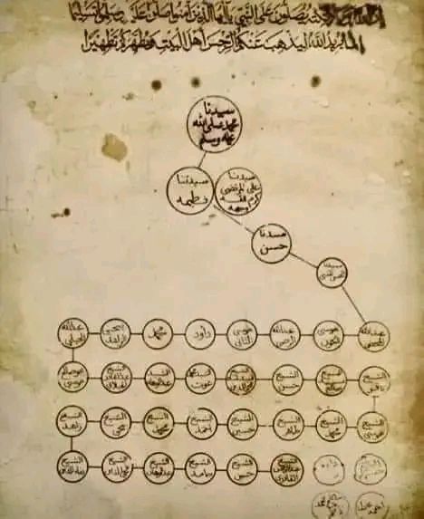 Il s’agit de Mawlana Cheikh Muhammad Nazim, fils d’al-Sayyid Ahmed Adil, fils de Cheikh Hassan, fils d’al-Sayed Zada, fils de Cheikh Abdul-Rahman al-Qadri, fils de Cheikh Hassan, fils de Cheikh Hamid, fils de Cheikh Abdul-Wahab, fils de Cheikh Muhiyuddin, fils de Cheikh Radhaddin, fils de Cheikh Zahid, fils de Cheikh Muhiyy, fils de Cheikh Muhammad, fils de Cheikh Ahmed, fils de Cheikh Hussein, fils de Cheikh Tahir, fils de Cheikh Muhammad, fils de Cheikh Musa, fils de Cheikh Baqir, fils de Cheikh Syed Salih, fils de Cheikh Hassan, fils de Cheikh Muhiyuddin, fils de Sayed Muhammad Ghawth, fils de Sayed Abdul Wahab, fils de Cheikh Abdul Qadir al-Jilani, fils d’Abu Salih Musa, fils d’Abdullah al-Jili, fils de Yahya al-Zahid, fils de Muhammad, fils de Dawood, fils de Musa II, fils d’Abdullah al-Radhi, fils de Musa al-Jun, fils d’Abdullah Al Muhad, fils de notre maître Hassan al-Muthanna, fils de notre maître al-Hassan as-Sibt, fils de notre reine Fatima, que la paix soit sur elle, fille de notre maître Muhammad, que la paix soit sur Lui, et fils de notre maître Ali al-Murtada, que Dieu bénisse son visage.🌹