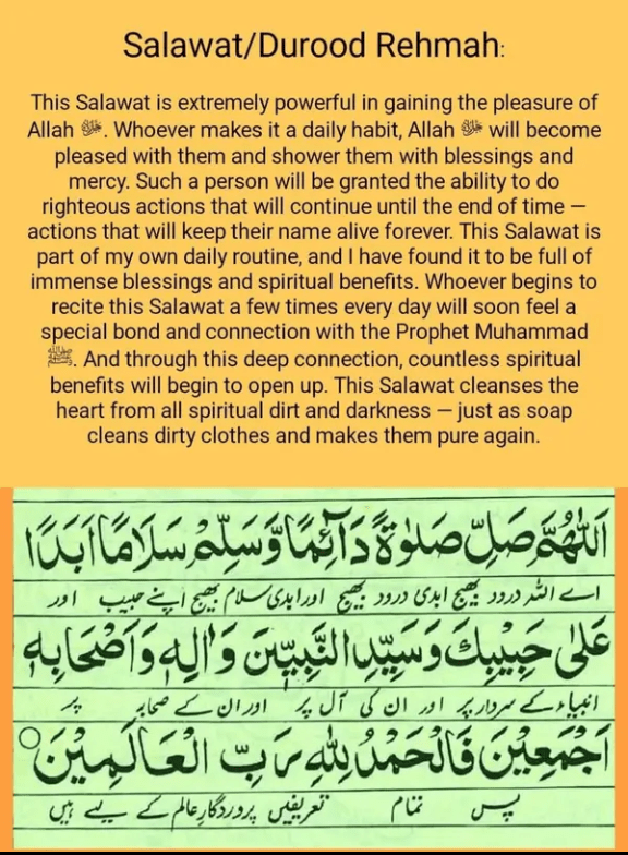 Allahumma salli wa sallim ‘ala Seyyidina Muhammad ﷺ salatan tu’arrifuna biha iyyah wa ‘ala ālihi haqqa qadrihi wa miqdarihi al ‘azim.