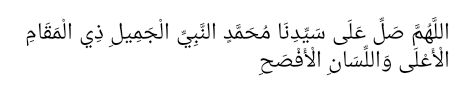 Allahumma salli ‘ala Seyyidina Muhammadin an Nabiyyi al Jamil, dhil maqāmi al a’ala wal lisāni al afsah.