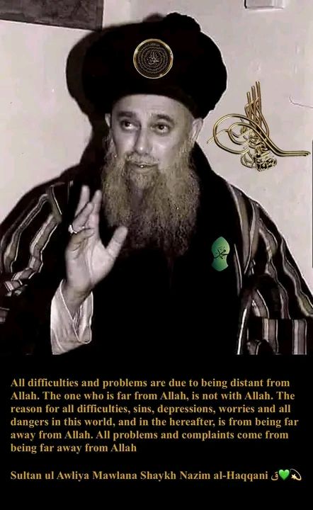 « Mawlana Shaykh Muhammad Nazim Adil al Haqqani est l’imam (chef) du Peuple de la sincérité, le Secret de la sainteté, qui a fait revivre l’ordre Naqshbandi à la fin du XXe siècle, grâce à la guidance céleste et à l’éthique prophétique. Il a insufflé à la nation et à la planète l’amour de Dieu et l’amour des amoureux de Dieu, après qu’elles aient été assombries par le feu et la fumée des tribulations et de la terreur, de la colère et du chagrin… »