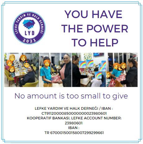Here is an association that works in Lefke with the blessing of Seykh Mehmet to help the needy. If you wish, you can share your contribution and follow their activities via facebook: https://www.facebook.com/lefkeyardimvehalkdernegi