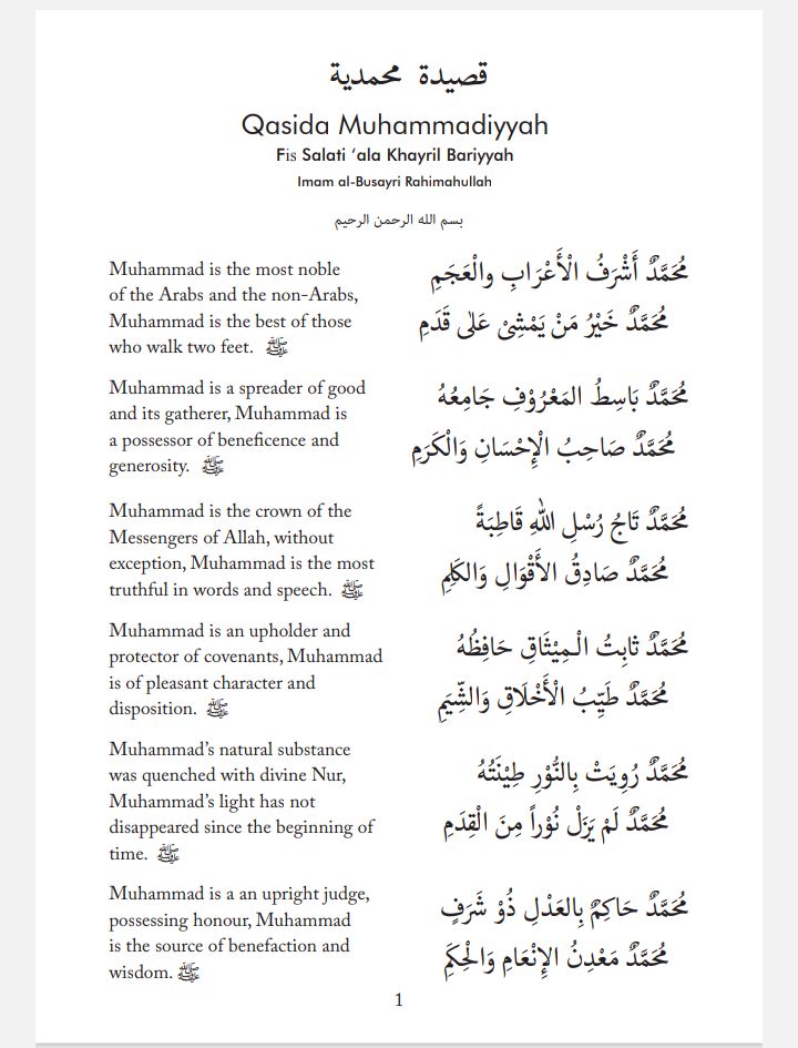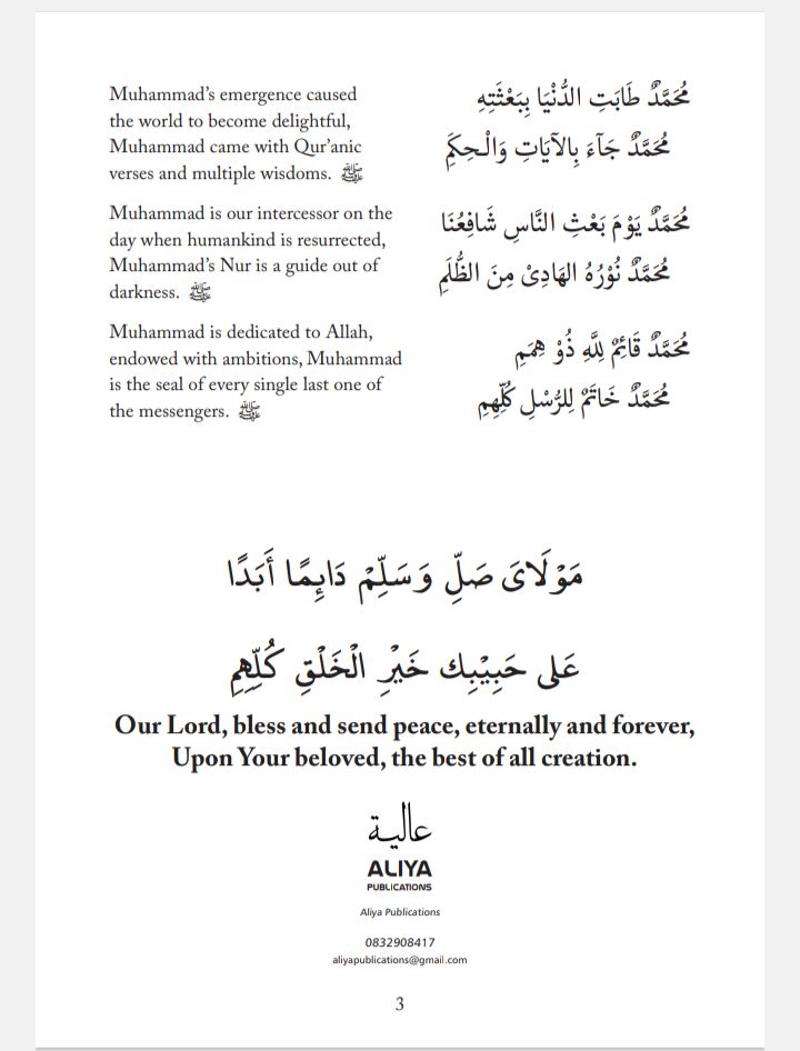 Alfa alfa afdalu as Sallam ‘alayka ya man arsalahu Llahu, ta’ala Rahmatan lil’alamin