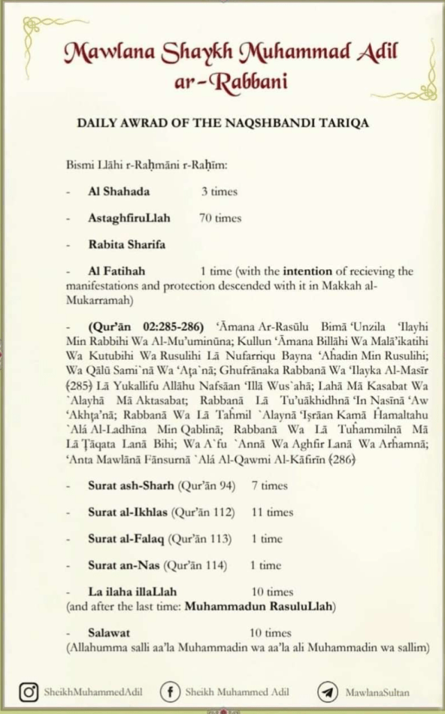 🌹AWRAD QUOTIDIEN DE LA TARIQA NAQSHBANDIYYA ‘ALIYYA🌹
