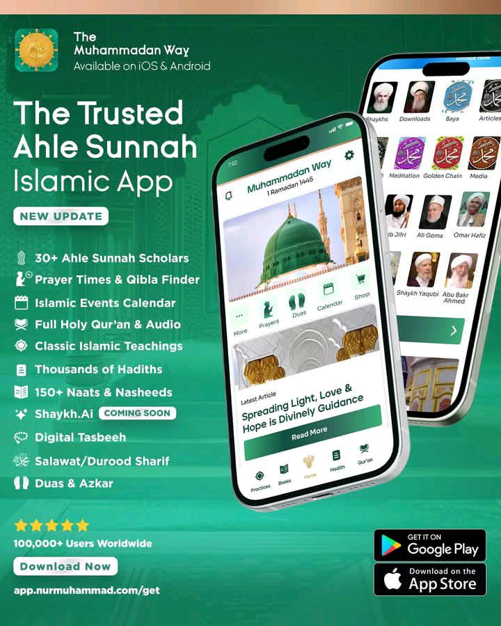 L’application Ahle Sunnah de confiance, Muhammadan Way. Maintenant avec plus de 30 nouvelles fonctionnalités, y compris les savants Ahle Sunnah, les temps de prière, Tasbeeh numérique, Qibla Finder, calendrier des événements islamiques et beaucoup plus.